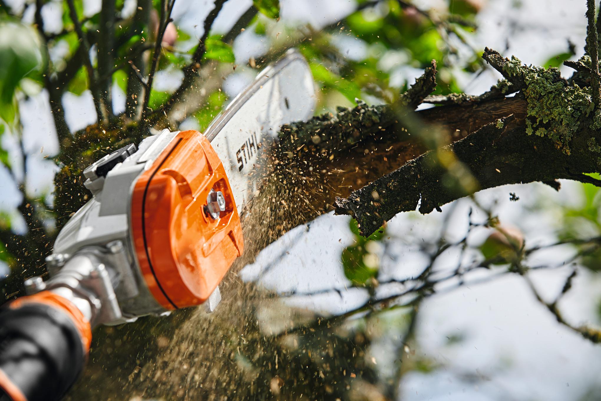 MAGASABB SÖVÉNYEK ÉS FÁK GONDOZÁSÁHOZ. A teleszkópos szár segítségével a magasabban lévő ágak nyesése is kényelmesen elvégezhető a talajról. A teleszkópos szár szerszám nélkül állítható.